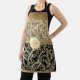 Luxe, chic, élégant, glamour parties scintillant or et tablier noir avec tourbillons floraux, et initiales monogrammes à la ceinture.
