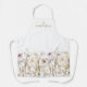 Un tablier de sauce terrestre monogramme avec fleurs sauvages d'aquarelle en rose avec parties scintillant or et votre nom dans un type de script or.