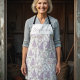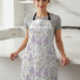 Cook with charm in this personalized apron. Features a seamless floral pattern of pastel peonies, lavender lilacs, and green leaves on light white—ideal for cottagecore kitchen decor. Add any name in an elegant script, machine-washable, perfect lavender gift.
