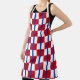 Add a pop of patriotic flair to your cooking or grilling with this stylish apron featuring a red-and-white checkerboard pattern accented by bold vertical blue stripes. Whether you're flipping burgers at a Fourth of July BBQ or baking your favorite treats, this apron is designed to keep you looking sharp and staying clean. Durable, adjustable, and perfect for both indoor kitchens and outdoor events.