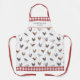 Ce tablier comporte un motif de poulet mignon sur un arrière - plan blanc avec un chèque rouge / en vichy motif bordant la partie supérieure et inférieure du tablier. Customisez avec votre nom, dans un script simple et classique. Le parfait ménage, vacances et cadeau d'ami!