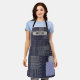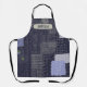 Tablier bleu foncé personnalisé avec design traditionnel japonais sashiko imprimé qui ressemble à des points de suture et des patchs et nom personnalisé.