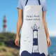 Elégant et simple tablier avec une illustration d'un phare dans les tons bleu marine! Il pourrait être un excellent cadeau pour un marin, un propriétaire de bateau ou un amoureux des océans et des côtes maritimes!