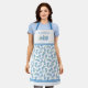 Un tablier floral chic et chic avec un motif de ne pas m'oublier. Ajoutez votre nom en lettres bleues.