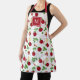 Tablier Pommes rouges, fleurs verdure Monogramme initial