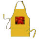 Tablier jaune soleil avec l'image d'une aquarelle extrême réalisme d'un trio de belles dahlias rouges. Voir la collection complète de l'Apron Fleurs et Plantes dans la section HOME.