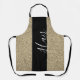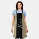 Montrez votre style dans ce salon de coiffure moderne Black Gold Parties scintillant Womens Apron. Il est conçu avec un arrière - plan tout-sur-imprimé en faux or parties scintillant. La zone centrale a le mot "cheveux" dans le style de grand script de calligraphie blanche en lettrage conçu verticalement sur large bande verticale.