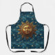 Sur un fond céleste étoilé, le visage serein d'un soleil doré stylisé.