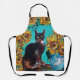 TABLIER SOUCHES AVEC CHAT NOIR EN TURQUOISE BLEUE
