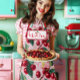 Tablier Style Retro 'Cherry Pop' Rose Personnalisé