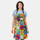 Ce tablier a un design Bauhaus de carrés avec des formes étranges à l'intérieur, répété à travers le design.