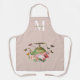 Tablier Théière Fleurs Roses et Papillons Monogramme