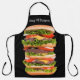 Tablier de cuisine pour hommes à thème barbecue drôle avec un design novelty géant hamburger empilé avec couche sur couche si haut qu'il prend tout le tablier avec texte sur le dessus, vous pouvez personnaliser en ligne ou le laisser tel quel. Fait un excellent cadeau novelty pour les hommes qui aiment cuisiner.