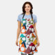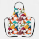 Ce tablier a un design moderne du milieu du siècle de triangles dispersés, certains avec des trous, dans des couleurs rétro.