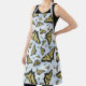 This design is of black and yellow Western Swallowtail butterflies, some of the most beautiful large butterflies in the world, floating on a blue sky with puffy white couds. My original painting is based on photographs I took in my own butterfly-friendly garden in the Southwest.