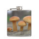Cette fleur impressionnante présente une photo magnifiquement détaillée de 4 petits tabourets jaunes qui émergent d'une bille dans un parc. L'arrière - plan est floue et les champignons sont photographiés au niveau, donc vous voyez le monde de leur point de vue.