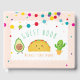 Having a taco themed baby shower? You'll love this taco theme guest book. Featuring ever so cute taco, cactus and avocado characters. Wording reads "Guest Book [mom's name] Baby Shower. Easy to customize with your own details and colours.