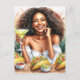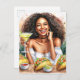 Set the tone for fun with this vibrant Tacos & Margarita Invitation Postcard, featuring a joyful, curly-haired, brown-skinned woman raising a margarita with a dazzling smile—surrounded by colorful tacos, fresh garnishes, and watercolor splashes. Her confident, carefree vibe and radiant energy make this the perfect design for any celebration where laughter, good food, and strong drinks are on the menu.