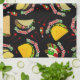 Colourful taco kitchen towel. Ready to salsa into the tastiest Taco Tuesday fiesta? Our Taco Tuesday collection is here to turn up the heat! Picture this: both soft and hard tacos in a sassy dance-off, set against a mysterious black backdrop, while bottles of red hot sauce shake it up! ??️ Get your Taco Tuesday fiesta on with our flavour-packed assortment, perfect for taco aficionados, hot sauce lovers, and party rockers! From zesty accessories to sizzling swag, this Taco Tuesday extravaganza guarantees a night filled with spicy fun and unforgettable flavours. Spice up your taco game and let the fiesta begin - it's time to taco 'bout it!