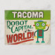 A funny Tacoma Washington vintage travel postcard featuring a friendly robot with fun retro style text that says, "Tacoma, Robot Capital of the world!"