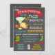 Super cool and modern Tacos and Margaritas Couples Shower Party Invitation. Have a Mexican Fiesta with tacos, tequilla & margaritas with maracas and fun typography against a black chalkboard background. Hand drawn illustration by McBooboo.
