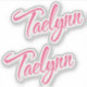 Taelynn name in pretty pink decorative cursive script font lettering. Two copies.