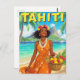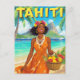 A stunning and vibrant vintage-style travel poster inviting you to Tahiti. This lush illustration features a beautiful woman on a tropical beach, wearing a flower crown and carrying a basket of fruit, with crystal-clear turquoise water and palm trees in the background. This retro artwork perfectly captures the exotic allure of the South Pacific and is ideal for travel lovers, summer enthusiasts, and collectors of vibrant island designs.