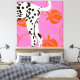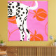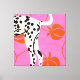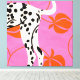 A bold and modern art print featuring a Dalmatian's hind legs and tail against a vibrant pink background. Stylized orange peaches and curved lines add a playful, abstract touch. Perfect for dog lovers and those who appreciate unique, graphic designs.