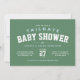 Kickoff to parenthood! Throw a tailgate themed baby shower with this fun original baby shower invitation. Part of a collection by Lea Delaveris Design, this sports themed invite features light blue and white type with an athletic feel on a turf-inspired background. Sports fans will love this athletic design and it's perfect for a couples' shower and especially a fall baby shower. All the type is customizable, so this design can be used for a variety of celebrations. Find more colours and party decor in the collection. This design is also available as a digital baby shower invitation download.