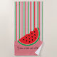 This fun design has a refreshing, slice of watermelon over a striped background. The stripes are green, red, pink and white.