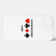 Showcase your wry bridge / duplicate bridge sense of humour with this iPhone 13 case featuring the four card suits along with the following bridge advice saying: "Take A Detour From The Ordinary Play Bridge". Make others do a double-take on the game of bridge with this sound bridge advice iPhone 13 case!