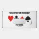 Showcase your wry bridge / duplicate bridge sense of humour with this desk mat featuring the four card suits along with the following bridge advice saying: "Take A Detour From The Ordinary Play Bridge". No need to be an avid bridge player to enjoy.