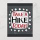 "Take A Hike Today" is a cute text design in grey with black and red text. It sits on a white accent shape and cute white polka dots surrounding it.