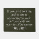 It says 'If you are knocking and no one is answering the door but you can see our car in the garage TAKE A HINT!'