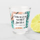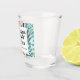 Tropical wedding keepsake favours for your beach wedding guests. Shot glasses featuring a tropical pattern with black text design that reads - Take a shot, we tied the knot. Customize with your names and wedding date.