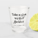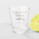 Black and white typography design wedding keepsake favours for your wedding. Shot glass that reads - Take a shot we tied the knot. Customize with your names and wedding date.