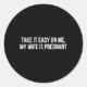 Take It Easy On Me My Wife Is Pregnant Funny Fathe Classic Round Sticker