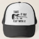 This funny design is a guitar, specifically a stratocaster, with bold text and innuendo.