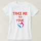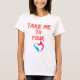 This T-shirt features a vibrant and artistic design with the slogan “TAKE ME TO YOUR” in bold, brushstroke-style lettering. The text is coloured in red and orange hues, with a blue brushstroke underneath. Below the text, an abstract human figure with open arms forms a heart shape, adding a touch of warmth and creativity. Perfect for casual wear, this T-shirt is a great way to express your unique style.