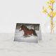 A beautiful Clydesdale stallion runs through a winter wonderland on this beautiful note card.