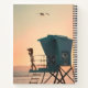 This is a spiral type of notebook. On both front and back covers is a rendering done in acrylic paint of a photographer taking photos on a lifeguard post or station. It looks like the start of the evening. Title of the rendering is: Taking The Perfect Picture.