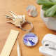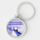 A digital painting of an Atlantic Puffin, with ocean waves crashing into the stone shoreline. The artwork is in a circle. There a purple hue cast over the image. Above the puffin's head in a purple font is: "Taking Too Much Has Consequences". Image Copyright ©2024 Kimberly J Tilley.
