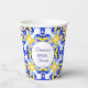 Talavera azulejo blue yellow tiles vintage Mexican bridal shower monogram printed paper cups template, Mediterranean Italian blue tile pattern Maiolica blue tiles Greek tiles pattern bridal shower personalized tableware table decor