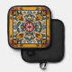 I ordered this product for my Mom as a gift and to check the product quality. It is a good thickness and great quality I am happy to report. She also advised that it will do a wonderful job in protecting her counters from hot pots and will last a really long time- durable. Printing is as expected and color is exactly her color of orange.