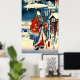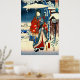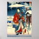 The right triptych panel of the snow scene, from the Tale Genji, is a collaboration by Utagawa Hiroshige and Utagawa Toyokuni. The left and right panels are signed Toyokuni-ga (painted by Toyokuni). Hiroshige hitsu (brush of Hiroshige) is on the centre panel. From an original 19th century (1857) woodcut, Furyu Genji Yuki no Nagame, by Utagawa Hiroshige and Utagawa Toyokuni. All Rights Reserved © 2013 padre art