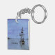 Un tableau aquarelle d'un grand voilier silhouetté contre le ciel du soir orne ce porte - clé personnalisable !
