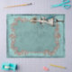This design is inspired by original artwork from Alice's Adventures in Wonderland by Lewis Carroll. Tall Alice is on a light green/teal background with an ornate rose coloured frame. Perfect for decoupage art, paper crafts, or gift wrap.