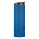 Tall blue travel mug with a black lid, featuring a pattern of lighter blue dots in varying sizes, creating a playful and modern design.