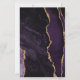 The left-hand edge of this elegant modern wedding invitation features a purple watercolor agate border trimmed with faux gold glitter. The customizable text combines charcoal grey handwriting, copperplate and italic fonts on an ivory background. The reverse side features a matching purple and gold agate design.