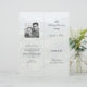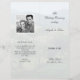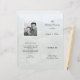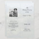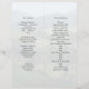 Tall, folded wedding program template with a scenic background of mountains and hydrangea trees. Add a picture of the couple to the back of this tall program with a personalized "thank you" message to family and guests. Template text inside makes it easy to customize with charcoal grey printed text. **Please do not change the paper type.